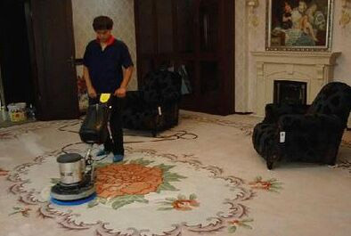 用進口地毯機配合防霉高泡地毯清洗劑,針對不同污漬使用專業(yè)清洗劑針對處理,吸水機吸污達到清洗如新的效果。